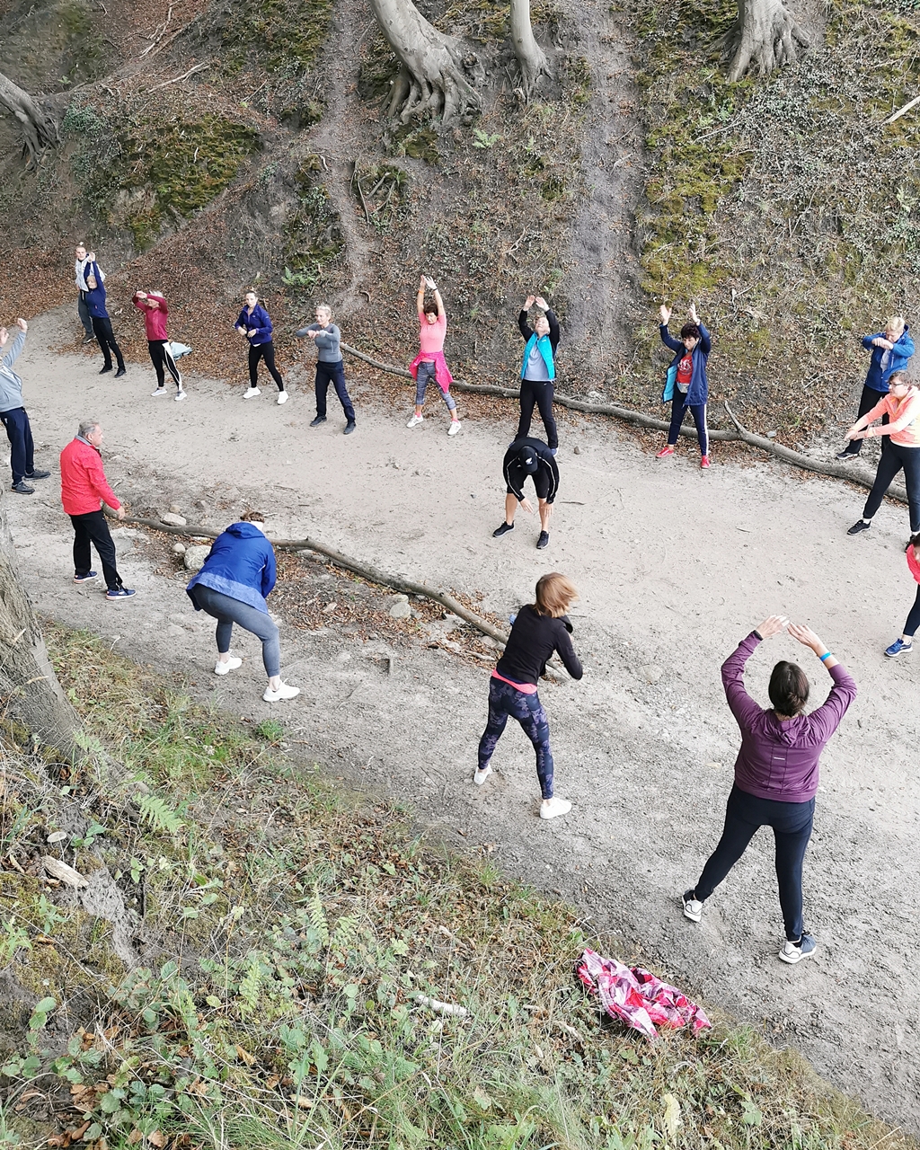 Ćwiczenia z samego rana dawały mi ogromną dawkę energii na cały dzień. Zresztą na zdjęciach widać, że nie tylko mi, bo na poranny rozruch stawiała się całkiem liczna grupa.